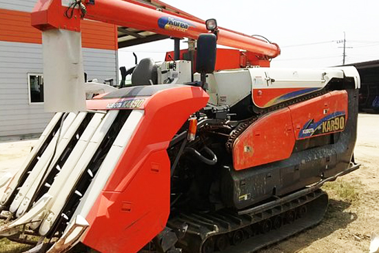 The Kubota half feed harvester kar90 is a machine that integrates harvesting crops, harvesting, threshing, and concentrating the grain into a storage bin, and then transporting the grain to the transporter through a conveyor belt. It can also be harvested by hand, and the straw of rice, wheat and other crops can be placed in the field, and then harvested and threshed by the grain harvesting machine. A crop harvesting machine that harvests grain and straw from cereals such as rice and wheat.